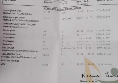 Labs reports were normal