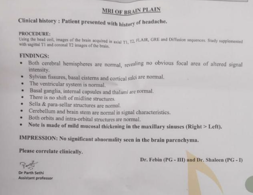 Patient reports were normal but patient was advised to rest and drink plenty of fluids. He was advised to meditate, exercise and reduce stress.