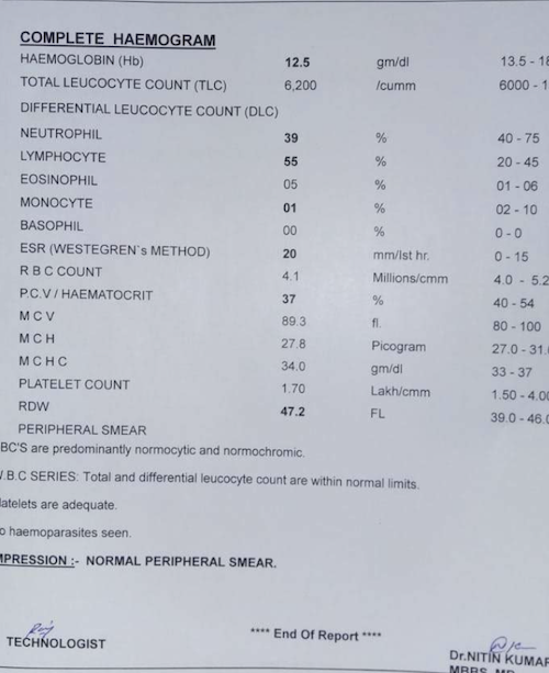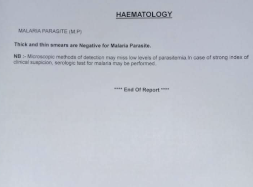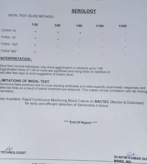 Patient was found to be positive for salmonella typhii i.e,typhoid. Patient was suggested to follow-up with paediatrician as soon as possible and start antibiotics. Mother was advised to give liquid diet to the child and avoid fast food. Follow-up as needed.