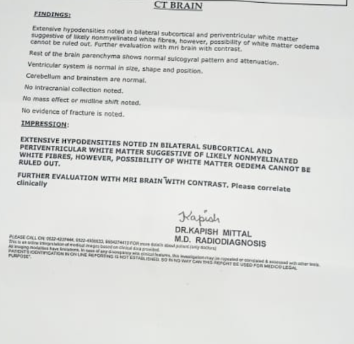 Labs reported extensive hypo densities noted in bilateral subcortical and periventricular white matter lesions.